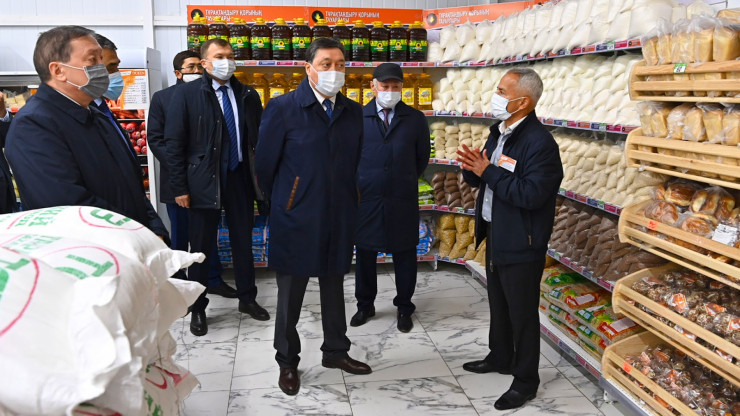 Мамин ознакомился с итогами уборочной кампании одного из крестьянских хозяйств Байзакского района, посетил оптово-распределительный центр "Жамбыл", социальный продуктовый магазин и осмотрел выставку продуктов питания, производимых в Жамбылской области.