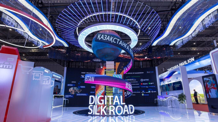 Казахстанский павильон был сфокусирован на достижениях страны в области цифровизации, что символизирует вклад Казахстана в развитие современного цифрового мира и торговых технологий.