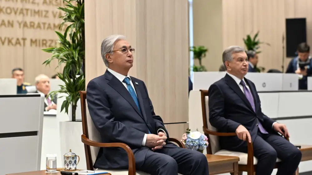 Касым-Жомарт Токаев и Шавкат Мирзиёев совместно посетили Общенациональный хакатон по искусственному интеллекту, который проходит в Бухаре.