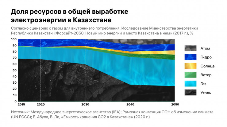 Газ – это транзитное топливо в энергопереходе и внедрении принципов ESG-управления. Замена угля газом может сыграть ключевую роль в декарбонизации экономики, позволив снизить выбросы CO2 в стране на 10-20 процентов до 2050 года (исследование Министерства энергетики РК).