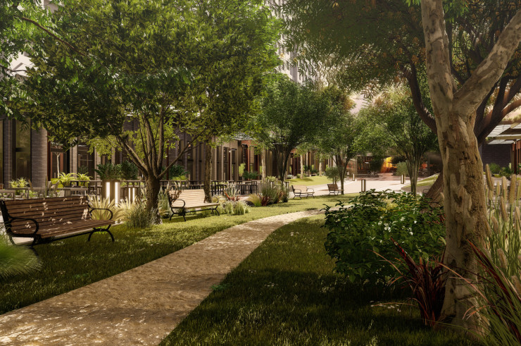 В проекте Rams City акцент сделан на озеленение и облагораживание территории с развитой сетью вело- и пешеходных дорожек. Один из трендовых ноу-хау благоустройства – амфитеатр на территории – можно использовать для собраний жителей и организации досуга. А яркий арт-объект "Яблоко" - как место для встреч и организации фотосессий.