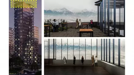 Проектом предусмотрено размещение панорамной смотровой площадки, с которой будет открываться обзорный вид на город и горы. Застройщик уверен, что комплекс станет излюбленным местом для посещения туристов и гостей южной столицы, новой яркой локацией, еще одним знаковым объектом и визитной карточкой Алматы.