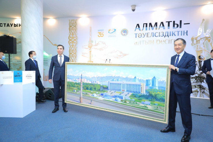 Аким Алматы Бакытжан Сагинтаев отметил, что представленные экспозиции посвящены достижениям мегаполиса за тридцать лет независимости.
