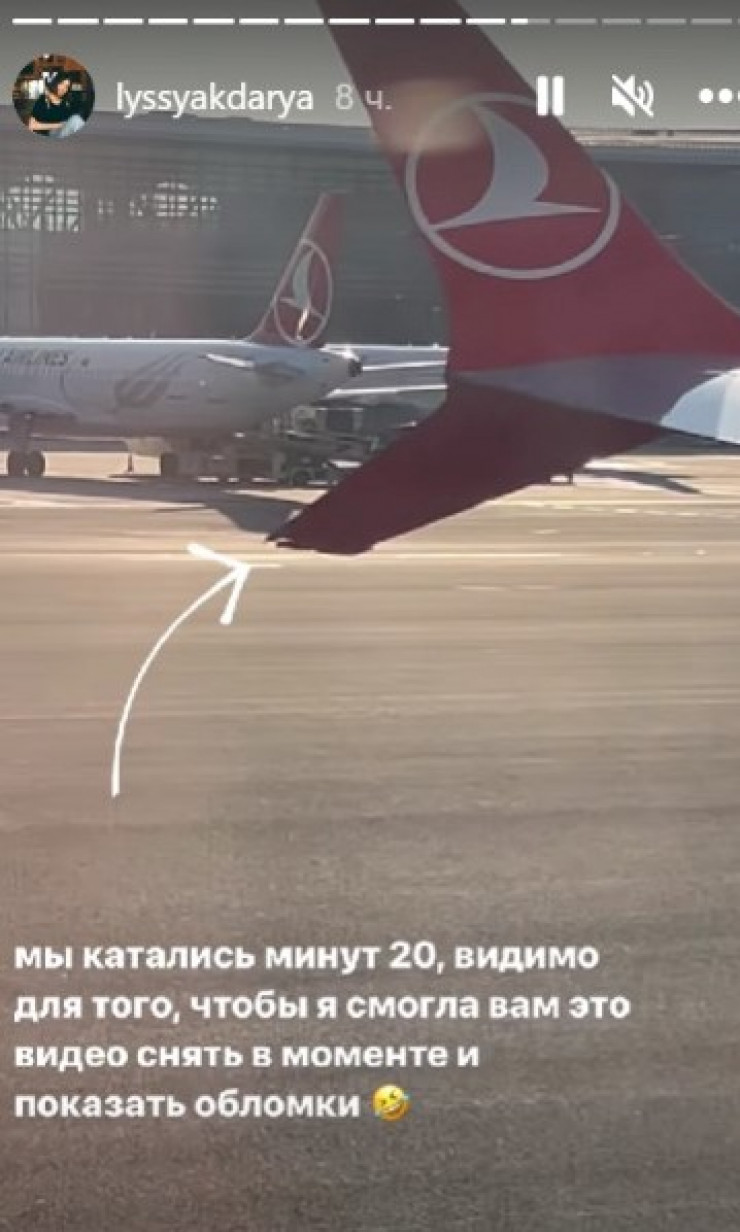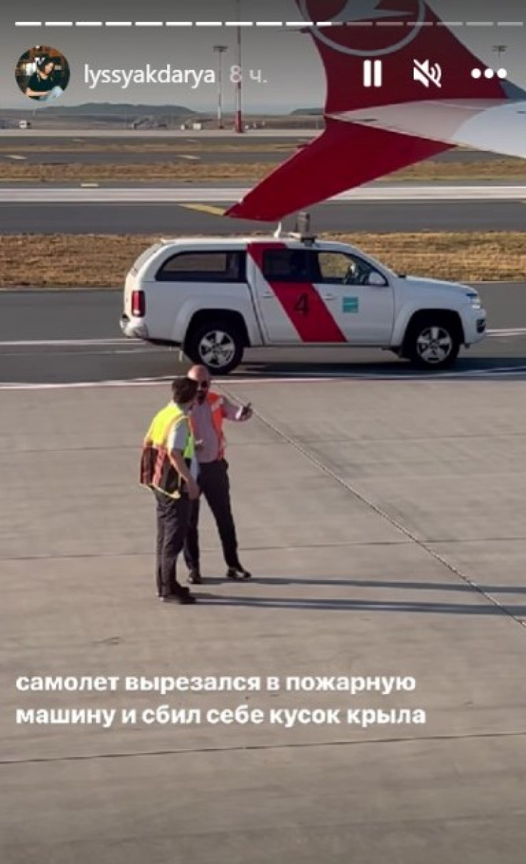 Жительница Костаная Дарья Лысяк рассказала на своей странице в Instagram, что самолет авиакомпанииTurkish Airlines, на котором они должны были вылететь из Стамбула, столкнулся с пожарной машиной во время движения на взлетную полосу, передает Tengrinews.kz.