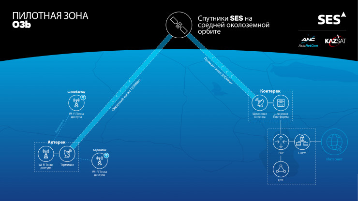 Ведущий в мире поставщик услуг по обеспечению связи для доставки контента SES совместно с Республиканским центром космической связи (РЦКС) запустили демопроект спутниковой группировки O3b MEO, в рамках которого обеспечивается высокоскоростное подключение к интернету в отдаленных населенных пунктах Казахстана. В течение 30 дней в демонстрационном режиме жители сельских населенных пунктов Актерек и Бериктас смогут протестировать доступ к интернету.
