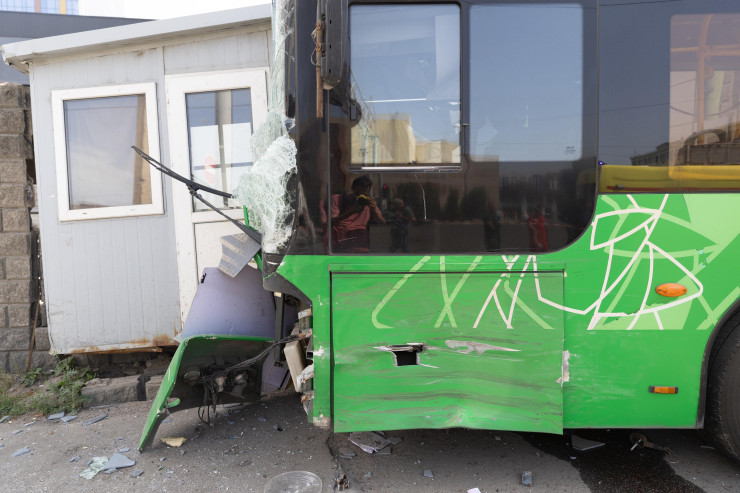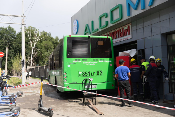 Ранее читатели прислали фото ДТП, произошедшего на углу улиц Макатаева и Масанчи. Судя по фото, водитель не справился с управлением и автобус врезался магазин, стоящий недалеко от остановки.
