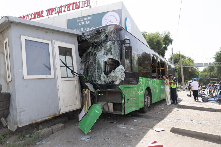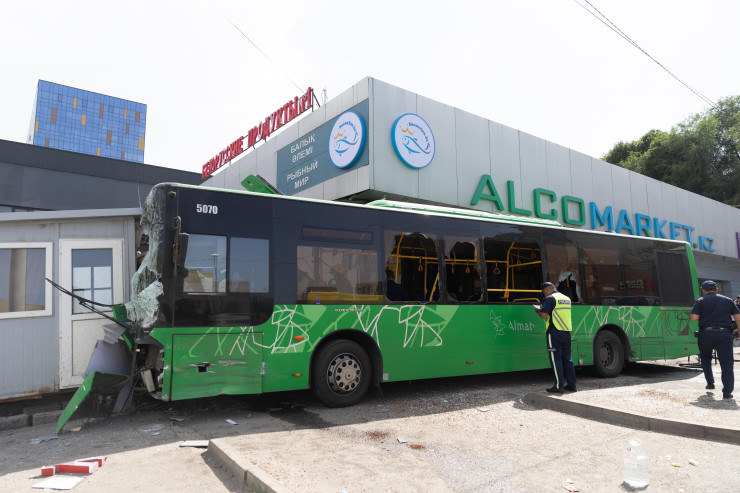 По предварительным данным пресс-службы департамента полиции Алматы, водитель автомашины марки "Киа", пересекая улицу Макатаева в южном направлении, допустила столкновение с автобусом 18-го маршрута, обслуживаемым частным перевозчиком ТОО "City-Bus", который впоследствии допустил наезд на препятствие.