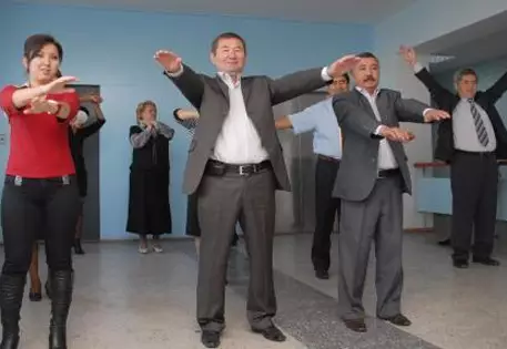 Ежедневно в акимате Актюбинской области госслужащие выходят на утреннюю зарядкую, пишет "Актюбинский Вестник". Разминка начинается ровно без пяти девять утра в фойе шестого этажа. Инициатором мероприятия оказался начальник областного управления физкультуры и спорта Асылбек Кулмагамбетов. Спортивный чиновник мечтает возродить традиции проведения подзабытых всеми производственных гимнастик. По его мнению, утренние "экзерсисы" способны на целый день зарядить человека положительной энергией. "К примеру, я, сделав с утра элементарные гимнастические упражнения, становлюсь намного бодрее, - признается главный спортсмен области. - У меня поднимается настроение и на протяжении всего рабочего дня я не чувствую усталости".