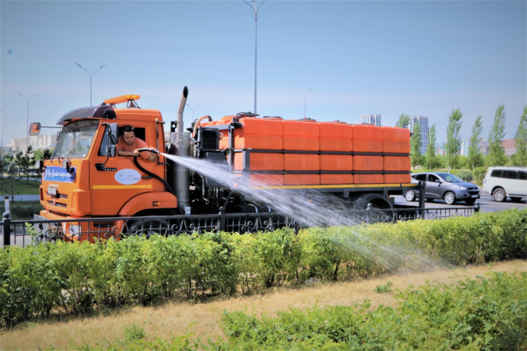 Начало июля в Нур-Султане выдалось очень жарким. Аномально высокая температура, по словам синоптиков, продержится еще несколько дней. В таких условиях акимат столицы мобилизовал группы по поливке деревьев, кустарников, газонов и цветников в городе, сообщает официальный сайт Нур-Султана.