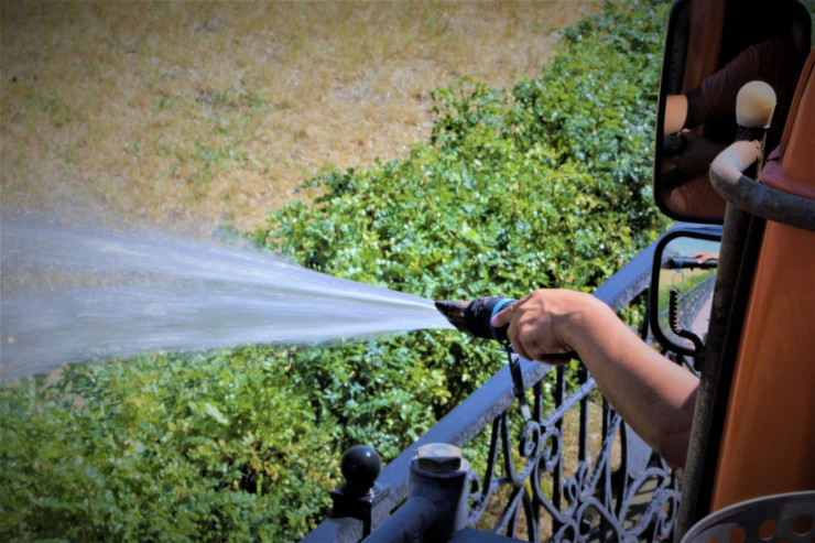 Помимо зеленых насаждений, городские коммунальные службы также занимаются поливом проезжих частей, тротуаров, дворов и парковок.