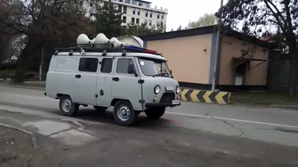 Спецтранспорт с громкоговорителями выезжает на улицы Алматы и Нур-Султана