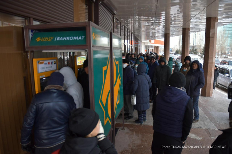 Жители столицы выстраиваются в очереди к банкоматам, чтобы снять наличные. Ранее в Нацбанке объясняли, что проблемы с работой банкоматов связаны с отсутствием Интернета, а также с отсутствием возможности обеспечить безопасную инкассацию при пополнении наличности.