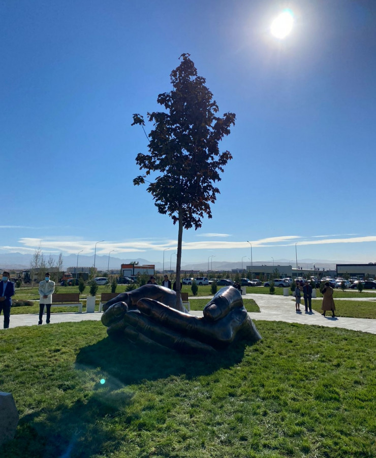 Торжественное открытие живой скульптурной композиции "Аяулы алақан" состоялось в канун празднования 20-летия со дня передислокации областного центра в город Талдыкорган и в рамках 30-летия независимости Казахстана.