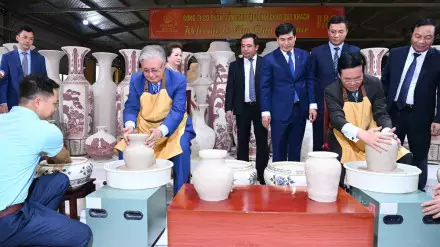 Касым-Жомарт Токаев и президент Вьетнама Во Ван Тхыонг совместно посетили керамическую деревню Чу Дао, расположенную в провинции Хайзыонг.