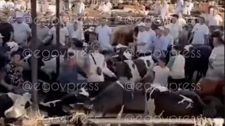 Толпа разъяренных мужчин устроила самосуд на скотном рынке в Туркестанской области Скриншот из видео