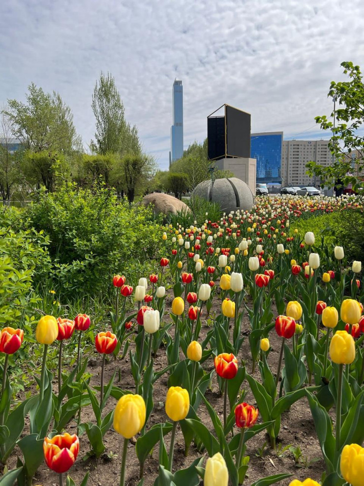 "Осенью 2020 года мы высадили 132 тысячи луковиц тюльпанов. В мае 2021 года они взошли, город стал ярче и значительно преобразился. Тюльпаны понравились горожанам. Прошлой осенью высадили еще 224 тысячи луковиц тюльпанов. И сейчас видим, как взошли тюльпаны, луковицы которых были высажены как в 2020 году, так и в 2021 году. К примеру, у монумента "Байтерек", на круглой площади, в Ботаническом саду, на правом берегу (Абая-Сарыарка, Республика-Богенбая, Женис-Есенберлина, Кенесары-Валиханова, проспект Момышулы), на центральной площади, возле памятника Бауржану Момышулы, возле скверов. Получается, во всех районах можно увидеть яркие тюльпаны - красные, желтые, белые", - отметили в ТОО "Астана Зеленстрой".