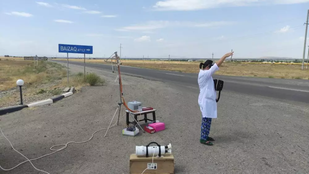 Как пояснили в Казгидромете, измерения концентраций загрязняющих веществ выполнялись по взвешенным частицам (пыль), диоксиду азота, оксиду азота, диоксиду серы, оксиду углерода, формальдегиду и фтористому водороду на пяти точках: 1) на трассе Тараз - Алматы, 5 километров от города Тараз, расстояние от склада боеприпасов составляет 14 километров, уровень радиации 0,12 микрозиверт в час; 2) на повороте 500 метров от Байзака, расстояние от склада боеприпасов составляет 12 километров, уровень радиации 0,17 микрозиверт в час; 3) вблизи послека Ушбулак Байзакского района, расстояние от склада боеприпасов составляет 8 километров, уровень радиации 0,15 микрозиверт в час; 4) вблизи послека Жибек жолы Байзакского района, расстояние от склада боеприпасов составляет 3,5 километра, уровень радиации 0,17 микрозиверт в час; 5) на выезде из села Сарыкемер, расстояние от склада боеприпасов составляет 10 километров, уровень радиации 0,15 микрозиверт в час.