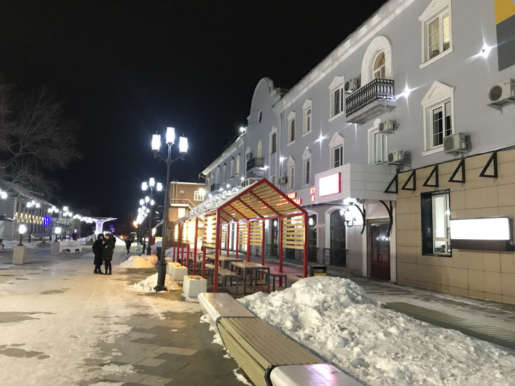 Местный Арбат недавно хорошо отремонтировали. Создатели, видимо, вдохновились алматинской улицей Панфилова. Здесь расположены магазины одежды и уютные кофейни. Правда, протяженность усть-каменогорского Арбата небольшая – всего что-то около 300 метров.