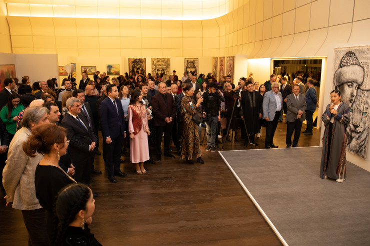 Во второй половине дня в культурном центре Гейдара Алиева открылась выставка изобразительного искусства Казахстана, на которой была представлена экспозиция из 46 уникальных произведений молодых казахстанских художников, работающих в разных жанрах и стилях.