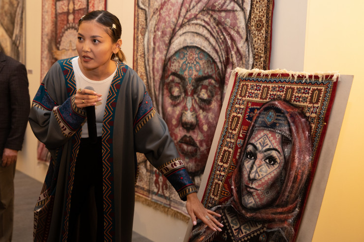 Большой интерес у гостей выставки вызвали работы Асель Сабыржанкызы. Молодой художник, известный в Казахстане как Ассоль, использует уникальную технику живописи на коврах.
