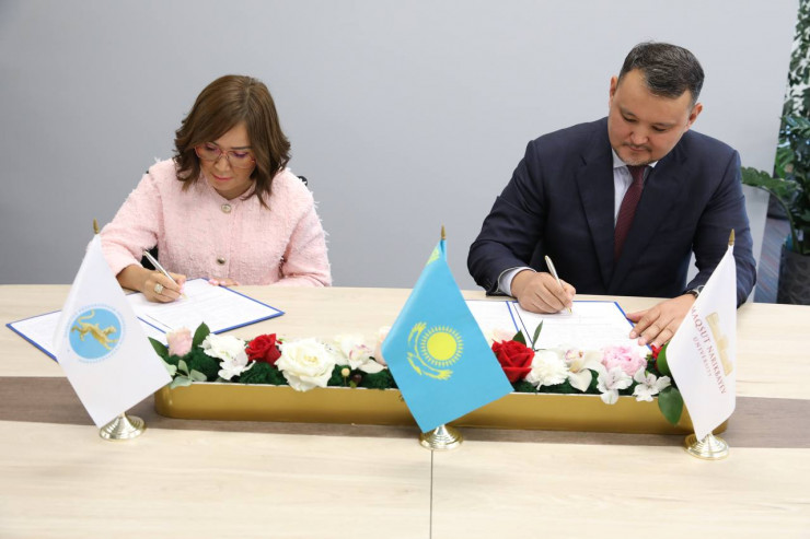 Меморандум подписали генеральный директор ТРК Раушан Кажибаева и председатель правления Maqsut Narikbayev University Талгат Нарикбаев.