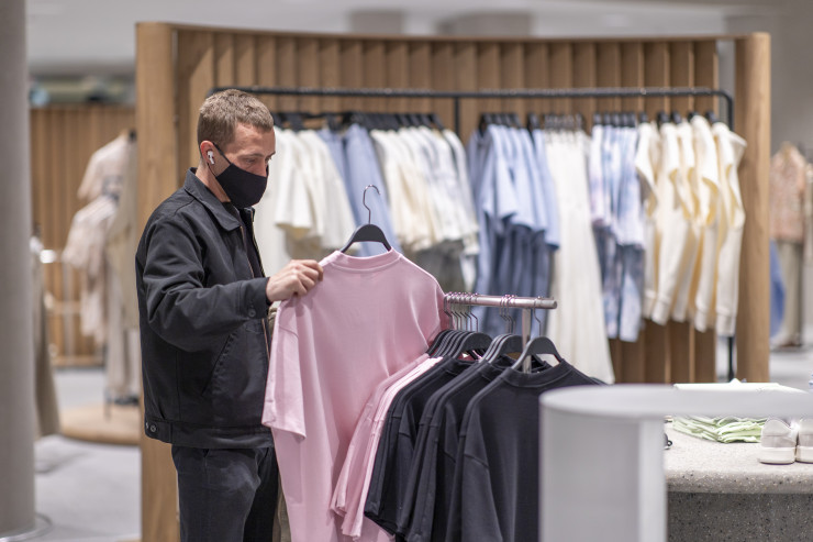 В магазине стало больше свободного пространства, увеличилось расстояние между рейлами и стойками с одеждой и обувью.