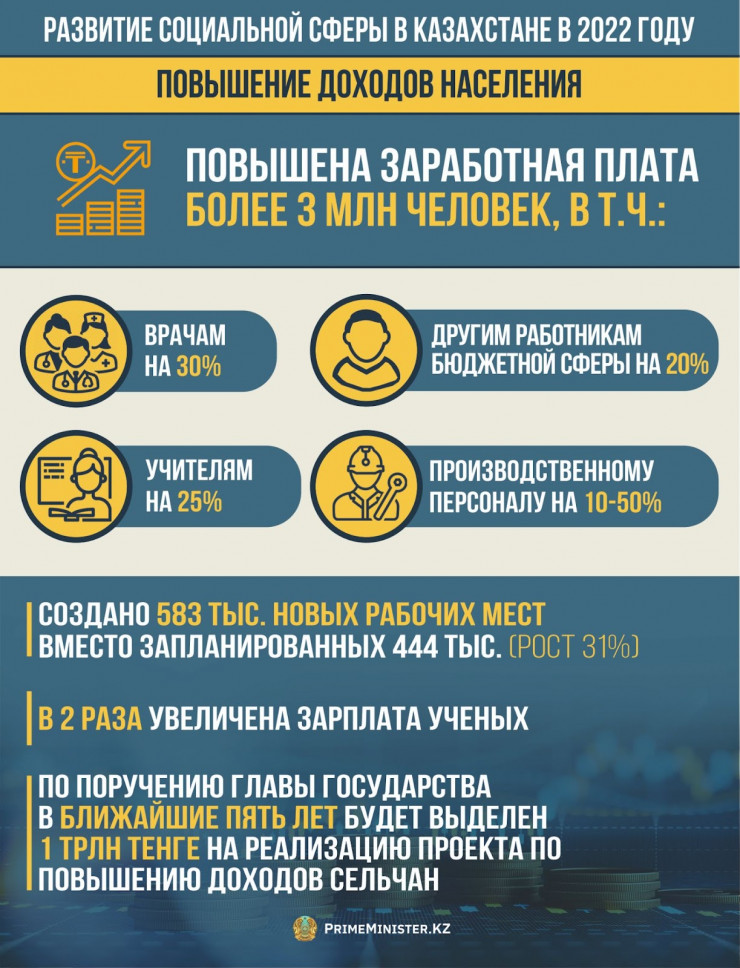 Редакция сайта Primeminister.kz предлагает ознакомиться с результатами работы, проделанной в социальной сфере республики в уходящем году, передает Tengrinews.kz.
