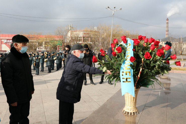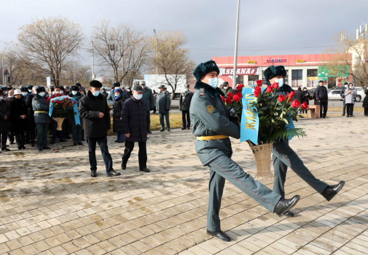 В честь 30-летия независимости страны состоялась церемония возложения цветов к монументу "Тәуелсіз Қазақстан" в городе Таразе.