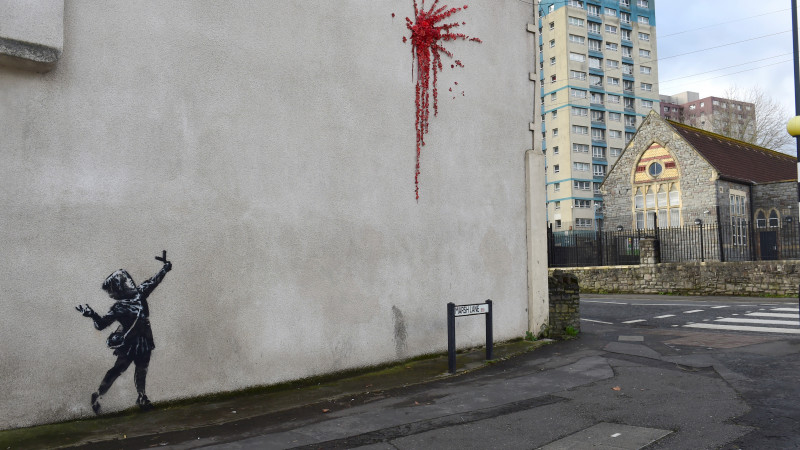 Отмечается, что непристойная надпись появилась на граффити спустя сутки после того, как Бэнкси подтвердил, что он является автором работы. Художник разместил фото работы на своем сайте и странице Instagram в первые часы Дня святого Валентина.