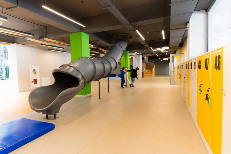 Да что там холл, прямо внутри школы установлена горка, на которой может прокатиться любой желающий.