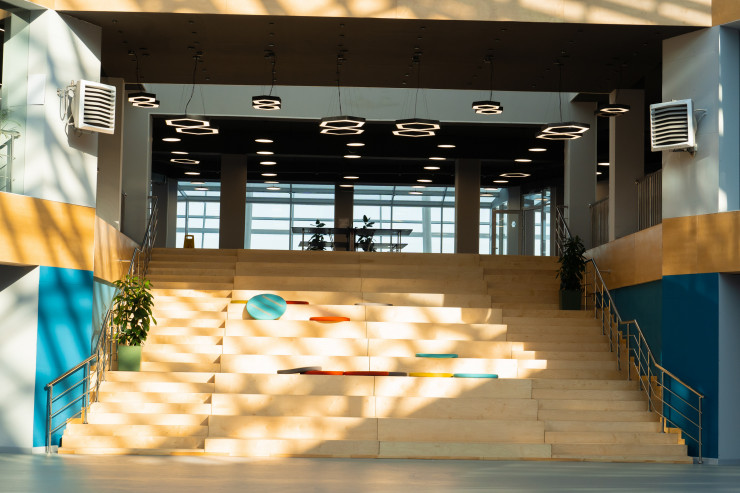 В школе Tamos нет общего звонка для всех, каждый учитель сам устанавливает для себя продолжительность урока. При этом особенность финской модели в том, чтобы не подавлять физическую активность детей, давать им возможность от души побегать - для этого здесь есть просторный холл.