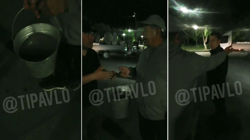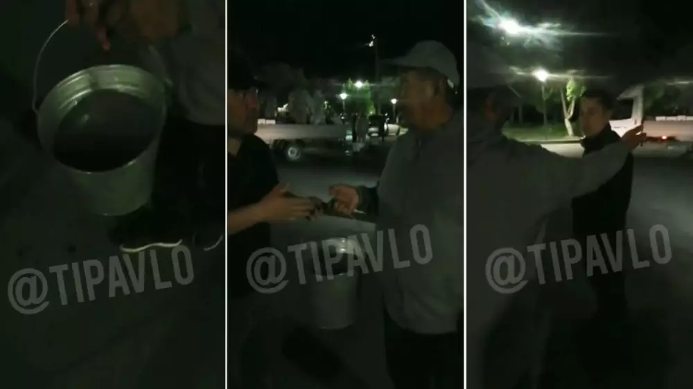 "Завтра к акиму области пойду. Это вода, ваши косяки мне не нужны абсолютно, я ответственный за город. Водой поливаете, экономите. Завтра все это у акима будет", - грозит мужчина и командует напарнику снять содержимое ведра на видео.