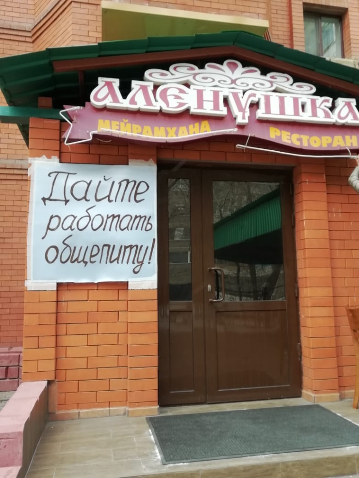 Владельцы кафе и ресторанов Темиртау устроили флешмоб. Они развесили на фасадах своих заведений плакаты с надписями "Верните работу!", передает корреспондент Tengrinews.kz.