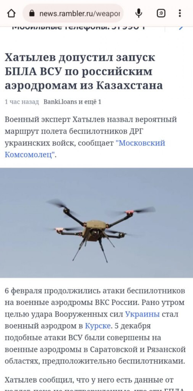 "Заявления о запуске БПЛА по российским аэродромам из Казахстана, приведенные на портале "Московский комсомолец", не соответствуют действительности. Кроме того, отмечаем, что данные БПЛА никогда не стояли на вооружении ВС РК", - прокомментировали в Минобороны Казахстана.