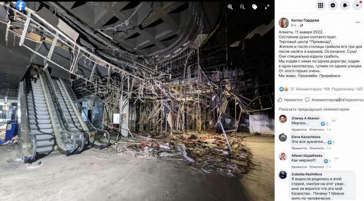 ТРЦ "Азия Парк" после погромов. Январь 2022 года, Алматы.