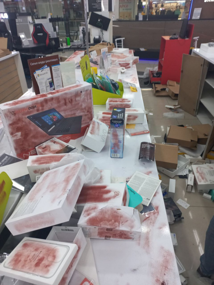 "С 5 по 7 января служба безопасности, арендаторы, сотрудники Aport Mall и народная дружина самостоятельно отбили 9 вооруженных атак со стороны террористов и мародеров, которые приезжали к моллу на джипах и грузовиках. Нападавшие были вооружены автоматическим нарезным оружием, ружьями и холодным оружием. Вооруженные боевики и мародеры стреляли, пытались поджечь молл, устраивали погромы. Травмы получили 10 сотрудников молла, к счастью, обошлось без жертв", - сообщили в пресс-службе "Апорта".