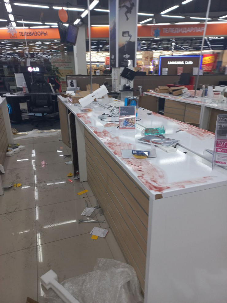 Больше всего пострадали магазины электроники. Мародеры выносили айфоны, ноутбуки и телевизоры. А крупную технику, которую не смогли вынести, просто разбили.