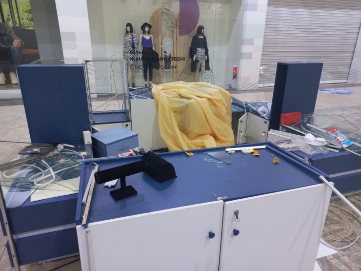 На пути у гикающей толпы оказался торгово-развлекательный центр "Азия Парк". Он расположен в нижней части города, на пересечении улиц Саина и Райымбек батыра. Торговый центр также разграбили, а затем подожгли. В здании сильно пострадало около 100 торговых точек. Точный ущерб еще подсчитывается.