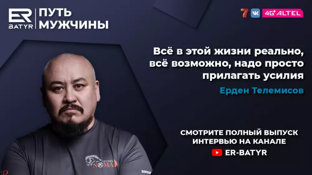 Ерден Телемисов - известный актер, каскадер и телеведущий. Он принял участие в съемках более 15 фильмов и сериалов, в том числе в его активе проект Netflix "Марко Поло", американский сериал "Воин" и американо-британский сериал "МакМафия".