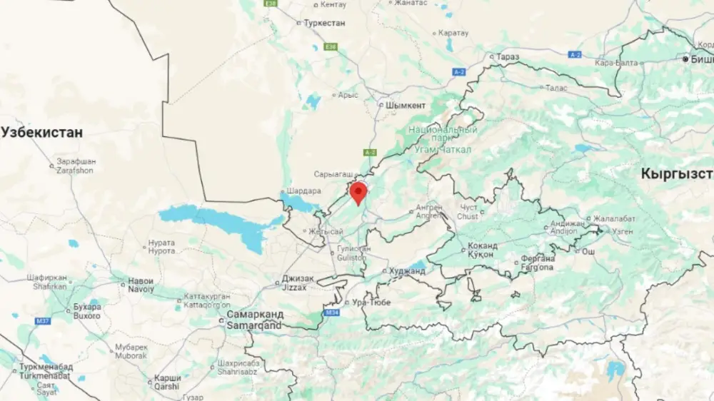 Землетрясение произошло близ Казахстана Скриншот Google Карты