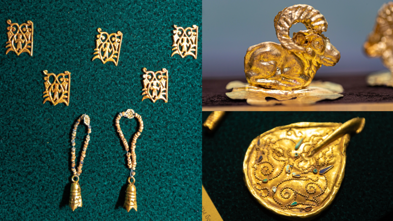 Артефакты обнаружены группой ученых Казахского национального университета имени аль-Фараби под руководством археолога, профессора Абдеша Толеубаева. Находка представляет собой украшения конской сбруи правителя сакского общества. Всего найдено 850 золотых изделий, в том числе фрагменты парадной конской упряжки. По оценке ученых, клад относится к среднесакскому времени – к V-IV векам до нашей эры.