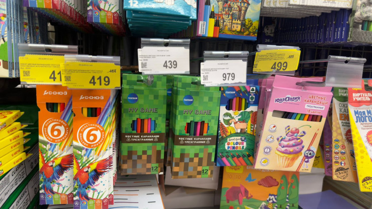 - карандаши цветные, 12 цветов - от 419 тенге и выше;