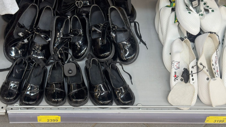Кроме канцтоваров, каждому ученику требуется школьная форма и сменная обувь. Самая дешевая подходящая для школы обувь, которую нам удалось найти, стоит 2 399 тенге. Это для девочки.