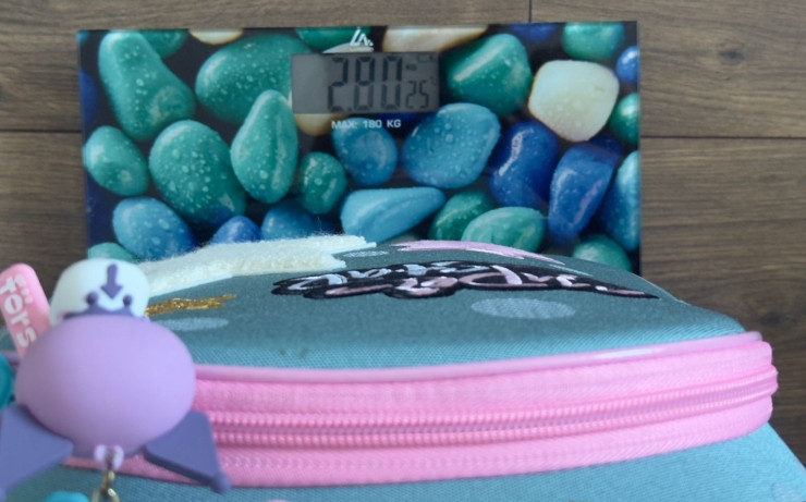 Помимо этого, в рюкзаке есть бутылочка с водой, ланч-бокс с перекусом и маленькая мягкая игрушка. Их вес (порядка 500 грамм) мы в учет не берем, но ребенок все равно берет это в школу.