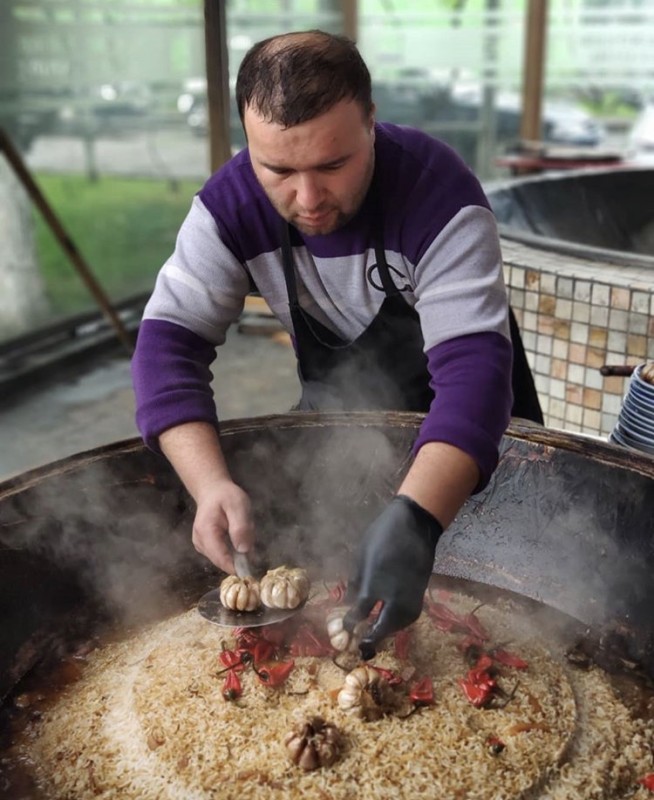Его начинают готовить с утра во дворе, на дровах и сразу в нескольких огромных чугунных казанах. К 11 часам блюдо готово. Захотите его отведать - приходите до четырех часов, в противном случае к пяти часам застанете только пустые котлы. Также тут подают чай, лимонады и несколько салатов. Алкоголя нет.