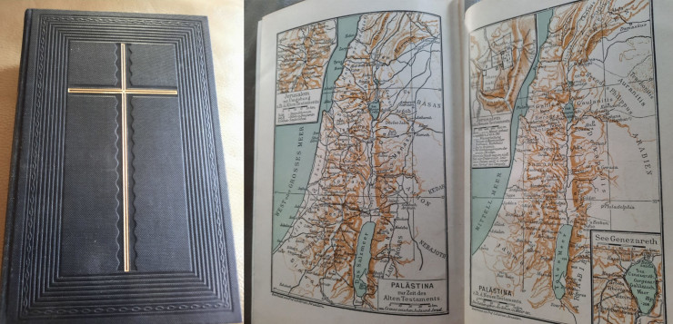 Теперь кое-кто говорит, что такой страны не существовало вовсе. Однако моя подруга из Германии прислала фотографии старых Библий своих родителей, изданных в 1890 и 1930 году. В Священных книгах того времени опубликована карта Палестины.