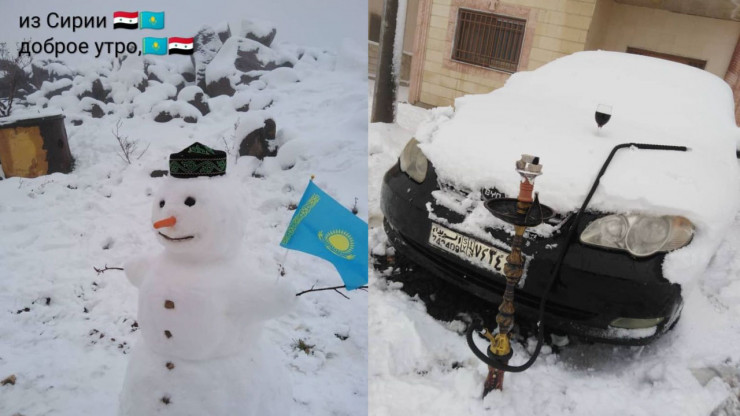 В Сирии тоже выпал снег. Жители этой прекрасной страны, несмотря на все беды, обрушившиеся на их головы, шутят, что противостояние мировых держав, видимо, будет длиться до последнего сирийца. Однако они стойко держатся, не теряют веру и надежду и устраивают снежные флешмобы. И присылают мне такие фото.
