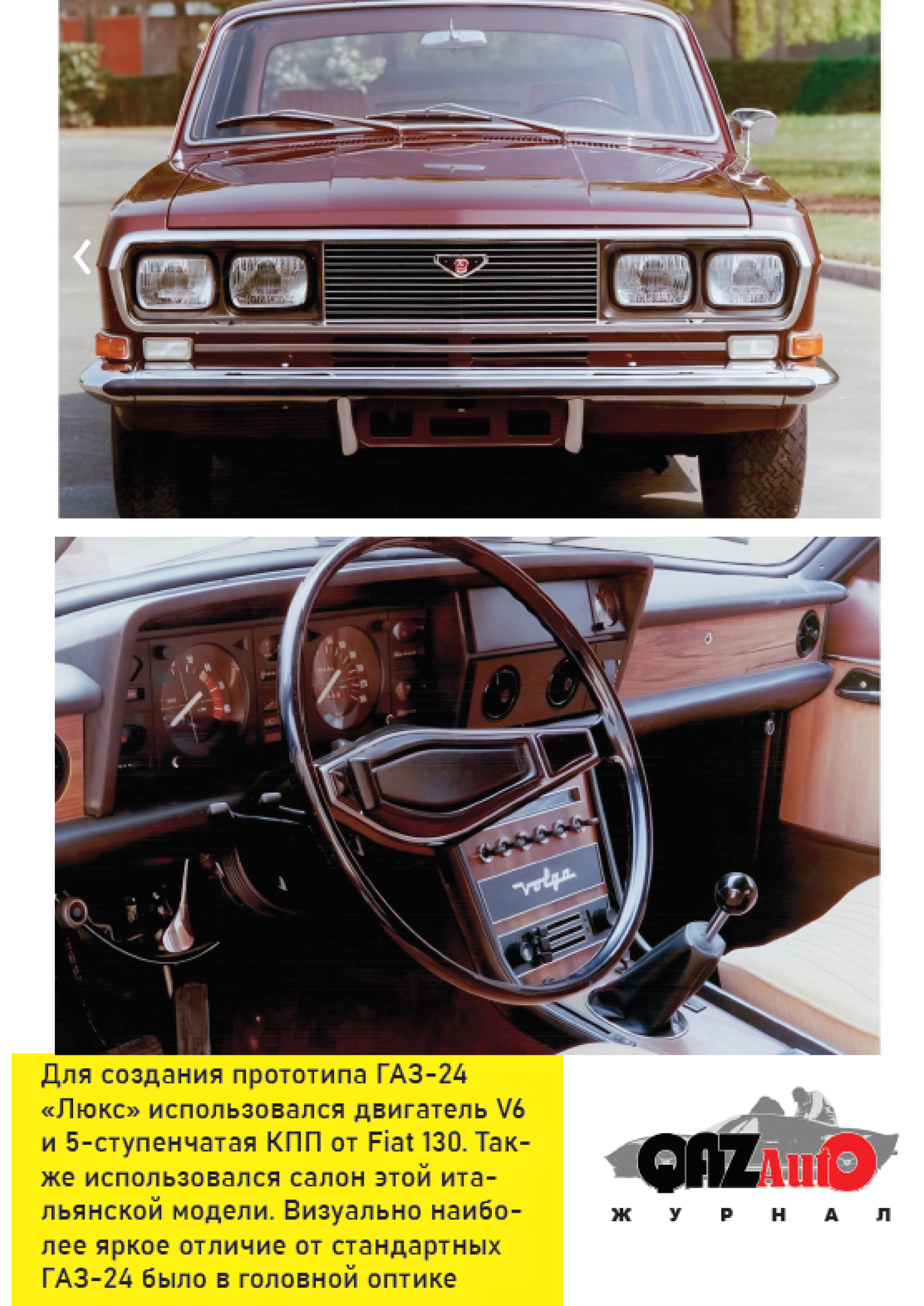 И все же итальянский люкс готов был попасть к советским гражданам. Правда, посредством производства не на Волжском автозаводе, а на Горьковском. Да, в 1972-1973 годы предпринималась попытка создать люксовый вариант "Волги" с двигателем, трансмиссией и некоторыми решениями в ходовой части от Fiat 130.