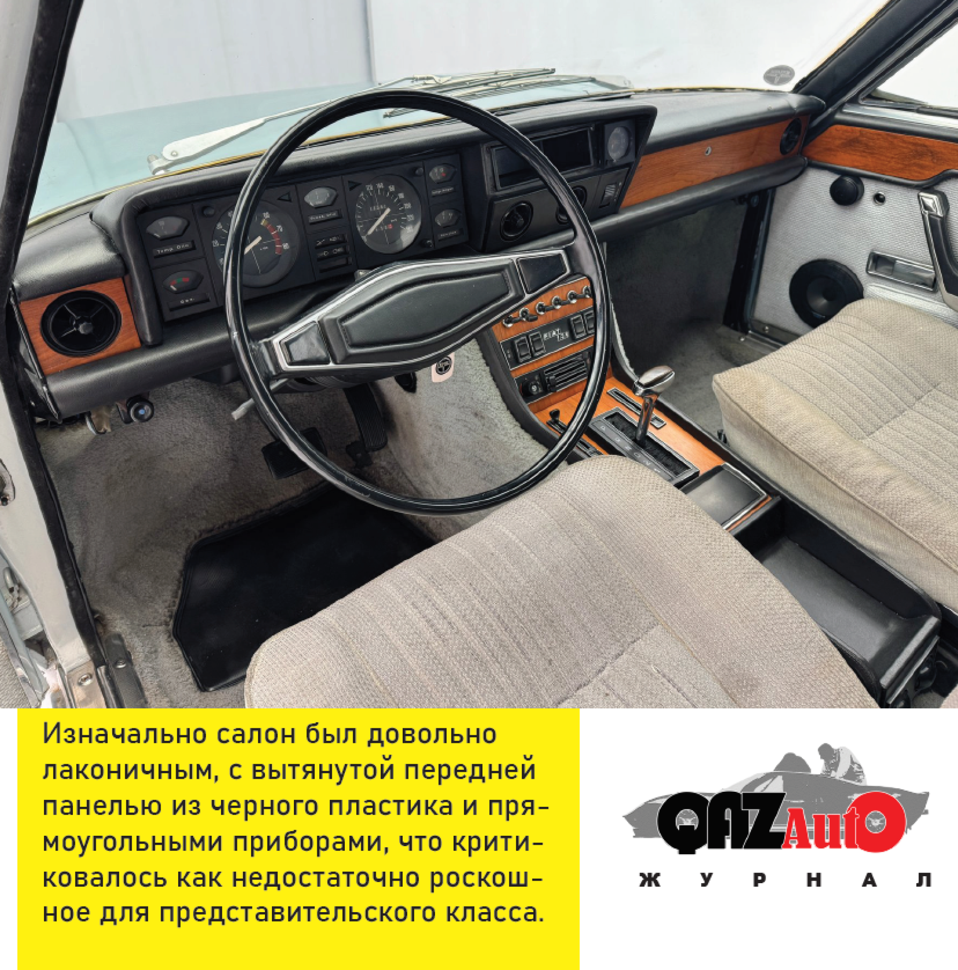 Что касалось внутреннего убранства, то в нем все было на высоте: спереди — два раздельно стоящих кресла, которые имели удобную, красивую форму и были оснащены аккуратными валиками боковой поддержки; не менее приятный взору и по ощущениям задний диван, формально рассчитанный на трех пассажиров, но на деле способный принять с комфортом лишь двоих; плоская передняя панель в американском стиле; двухспицевое рулевое колесо, сильно похожее на те, что впоследствии станут устанавливать на изделиях волжского автозавода; а также очень редко встречавшаяся на автомобилях тех лет передняя консоль (в то время на ее месте обычно была пустота).