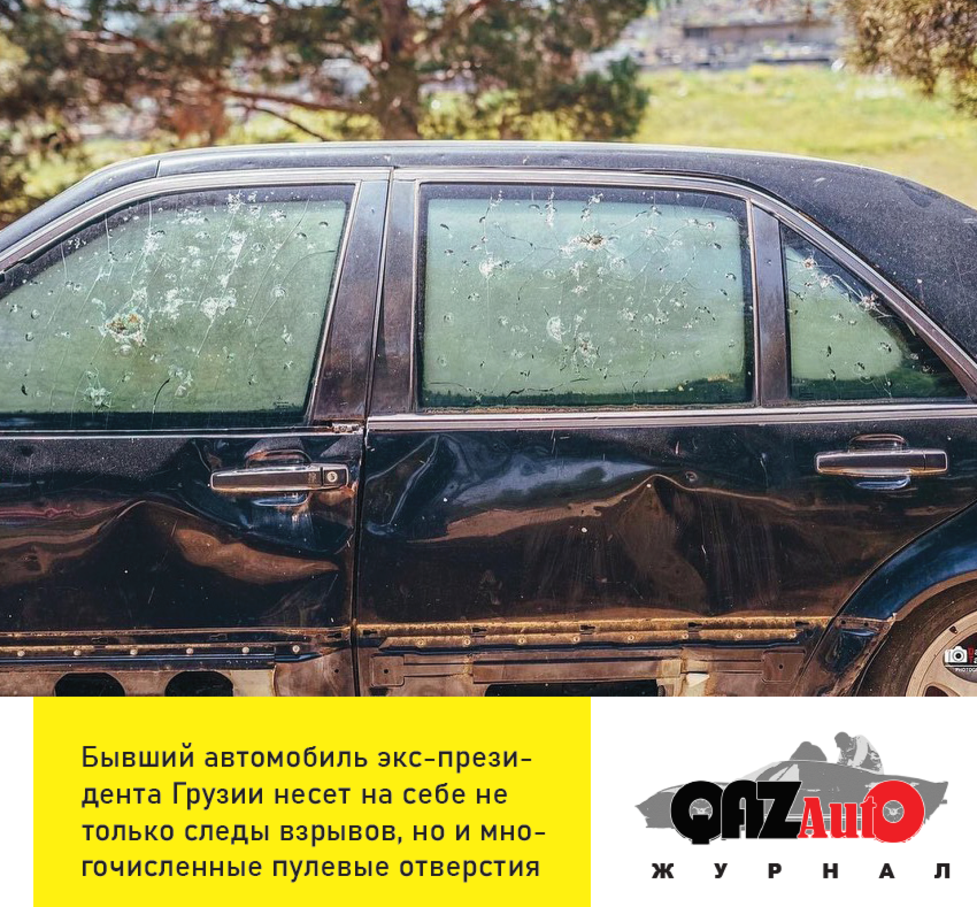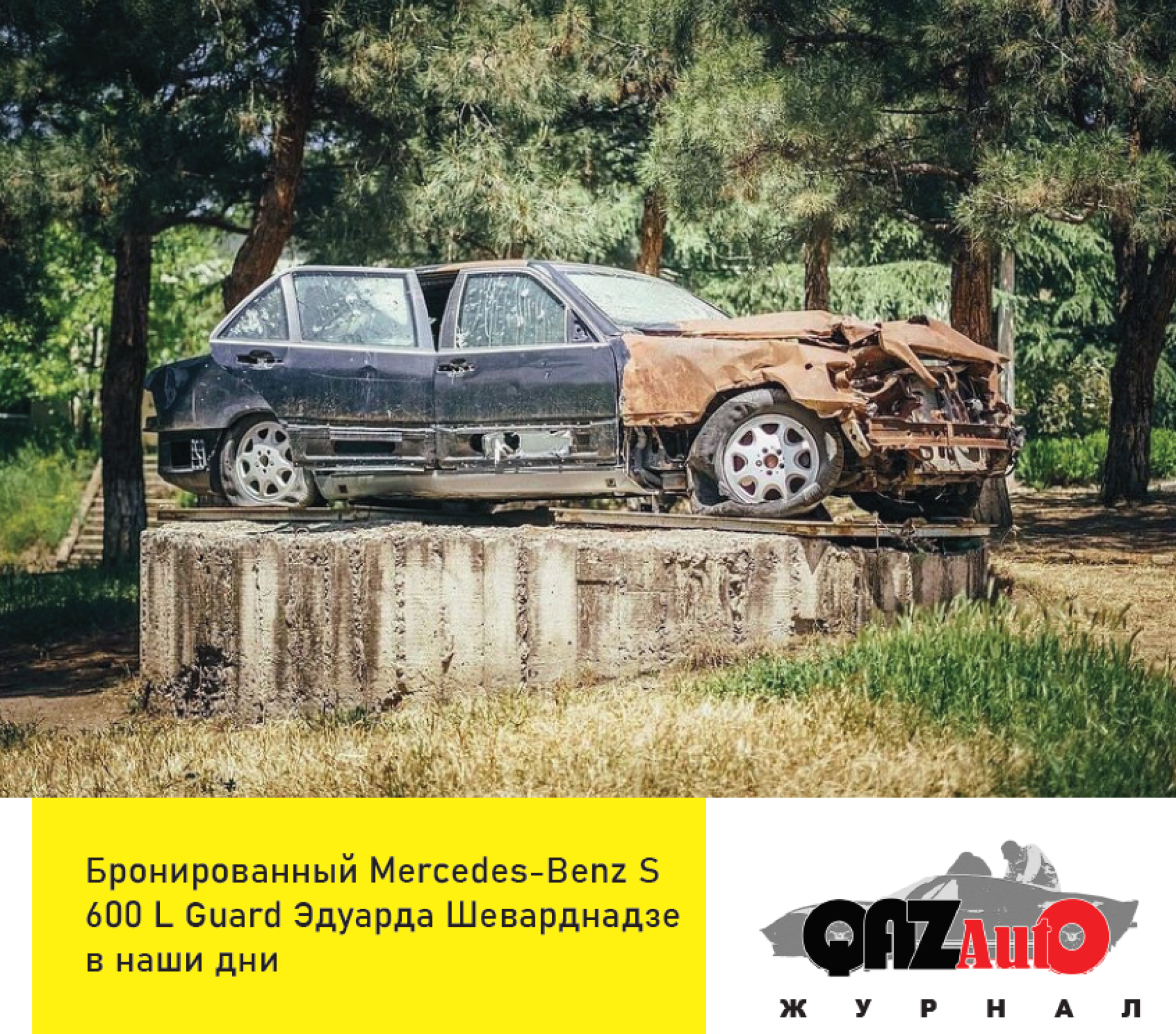Что касается самого Mercedes президента Грузии, ставшего объектом покушения, после он долгое время хранился на территории спецслужб страны. Однако совсем недавно в сети появились снимки, на которых этот Mercedes водружён как памятник на своеобразный бетонный постамент.